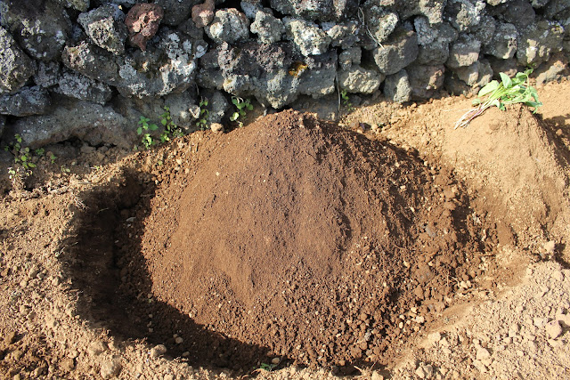 Como onde moro as geadas são violentas, planto provisoriamente as ramas em copos de iogurte, fazendo a transição para a terra quando passar o perigo das geadas. Não faço caculos, ficando plana a superfície da terra.